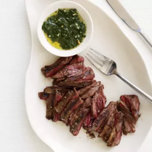 Meat Advice Mark Bittman’s Grilled Skirt Steak with Chimichurri Sauce Ingredients 2 cups chopped parsley ⅔ cup extra-virgin olive oil 6 tablespoons fresh lemon juice 2 tablespoons minced garlic 2 teaspoons crushed red pepper Salt and freshly ground pepper 4 pounds skirt Read More » October 10, 2023 No Comments