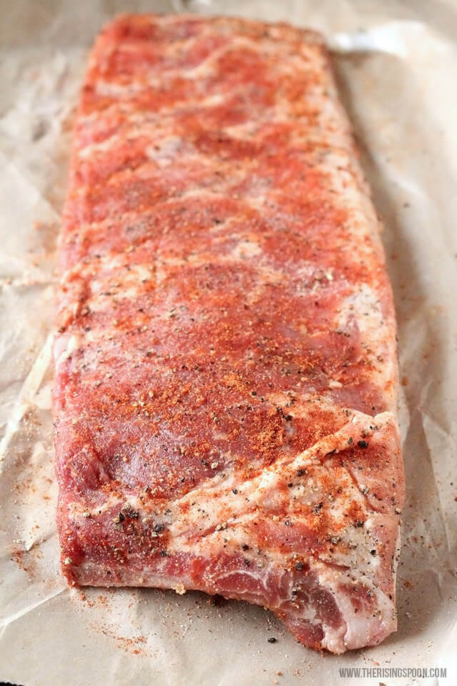 You could also opt for beef ribs if you’re avoiding pork. My recipe is based on St. Louis-style specifically, so if you switch up the variety used, check on them an hour earlier in case they cook faster.